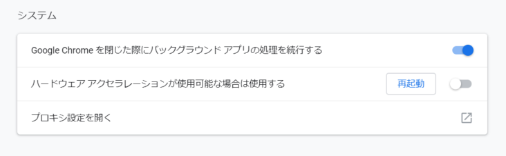 ⇒Chrome菜单【设置】-【高级】-【系统】。