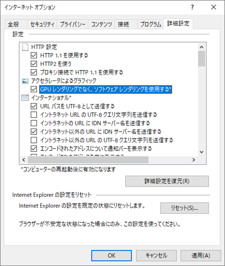 ⇒点击IE菜单中的[设置]-[Internet选项]-[高级]。