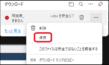 1. 显示“无法安全下载”的消息时,通过右侧的“…”单击“保存(保留)”。