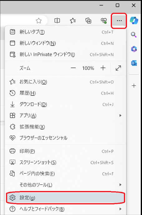 2. 通过Web浏览器右上角的“…”选择[設定(设置)]。