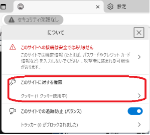 ※Web浏览器左上角可能会显示“セキュリティ保護なし(不安全)”。在这种情况下,可通过单击“このサイトに対する権限(此网站的权限)”显示上述设置。