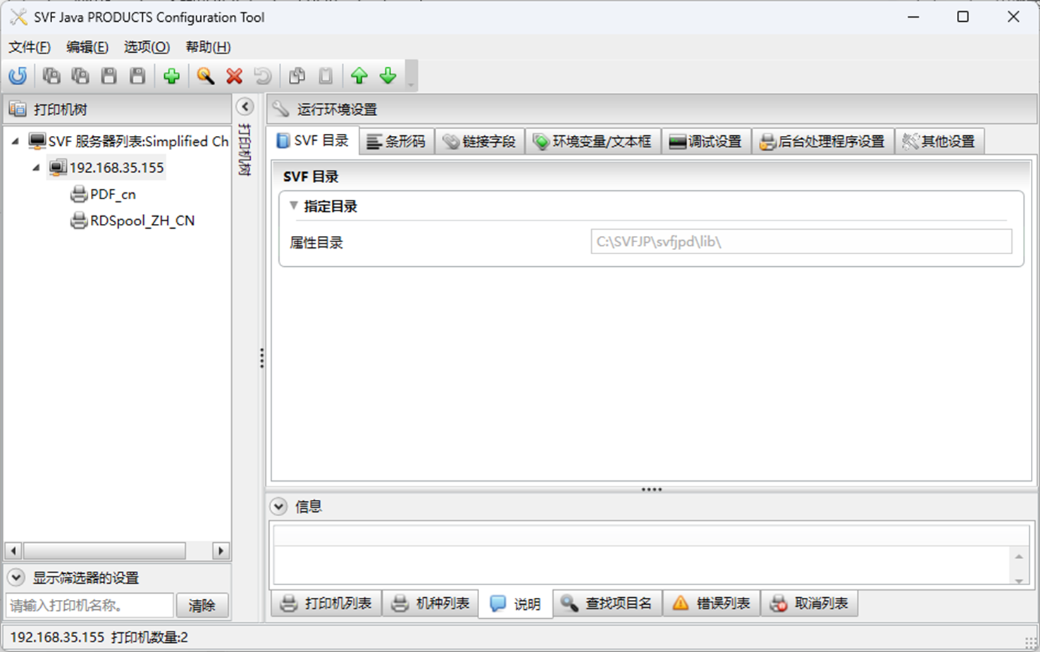 选择 [SVF Java PRODUCT] (Ver9.1) / [Super Visual Formade] (Ver9.2 及更高版本)-然后选择[SVF环境设置],启动 SVF Java PRODUCTS Configuration Tool。