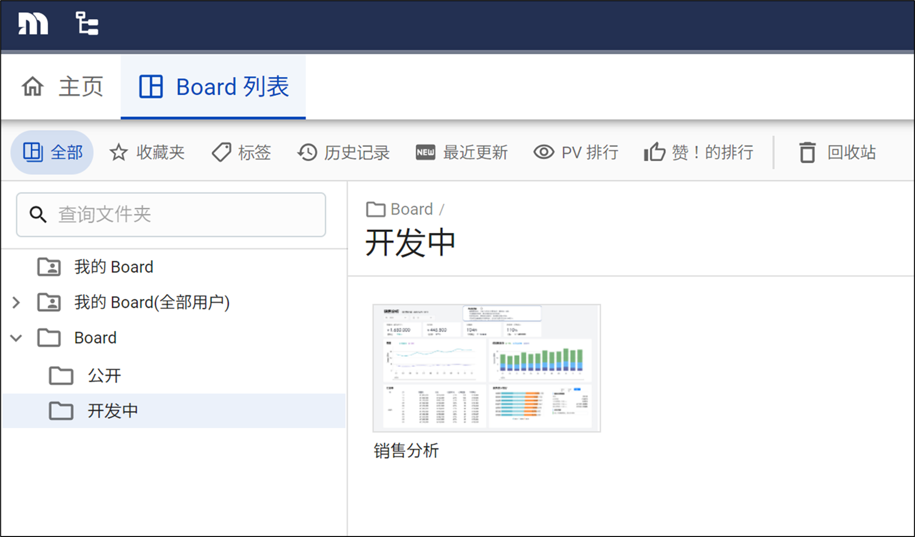 随着仪表盘数量的增加,可以将画面分类到“开发中”或“公开”等文件夹中,会更容易管理。